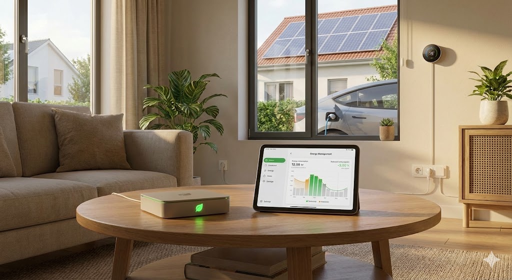 Modular, plug-and-play multi-sensors including occupancy, environment (Temp/CO₂), and smart meter interfaces for 100% home coverage.